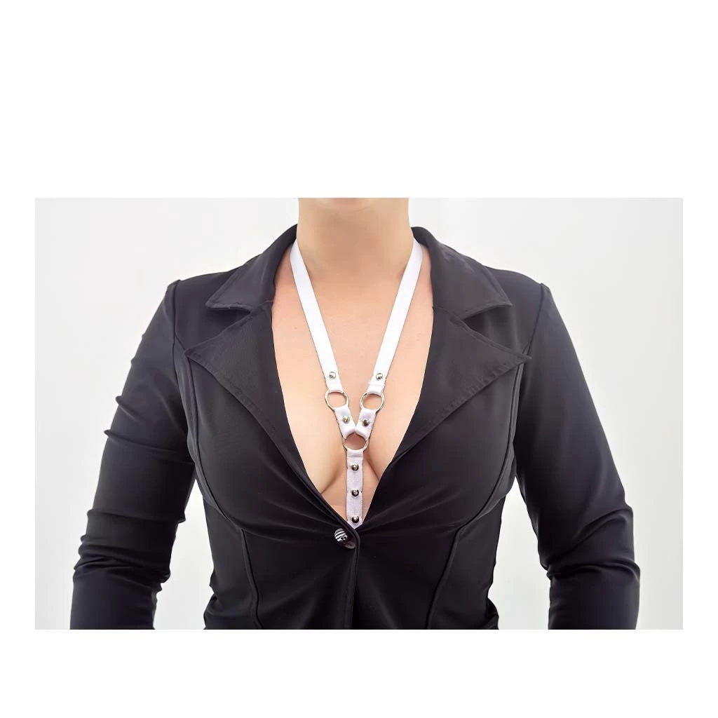 HARNESS VERMELHO EM TIRAS COM DETALHE DE ARGOLAS EM METAL