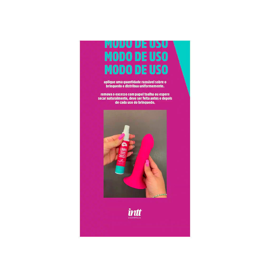 Modo de Uso: Aplique uma quantidade razoável do produto sobre o brinquedo e distribua uniformemente. Remova o excesso com papel toalha ou espere secar naturalmente. A higienização deve ser feita antes e depois de cada uso do brinquedo.