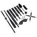 kit sado composto por venda, mordaça, algema, tornozeleira, coleira, guia, chicote e corda, prendedor de Mamilo, pena estimuladora. Com esse kit erótico, você vai entrar no mundo de mistério, fetiche, dor e prazer do bondage e do sadomasoquismo. PRODUTO SEM CAIXA