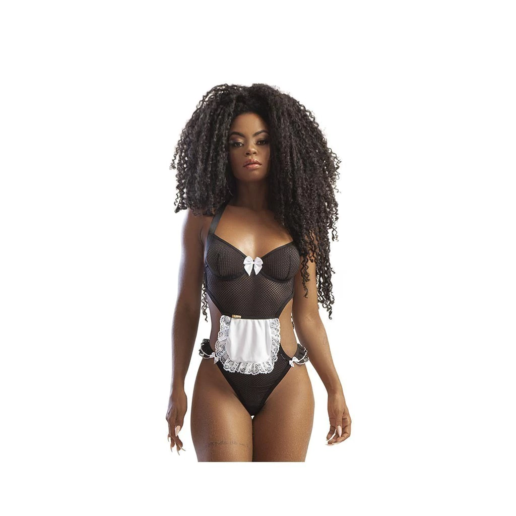 A Fantasia Empregadinha Sibele chega cheia de charme e uma pitada de erotismo. Body Líndissímo com aro de sutentação na parte do seio, fechamento em 3 níveis, mini-avental com detalhe em renda, lateral com babadinhos e laços em cetim, parte da calcinha em fio dental. Aposte nessa fantasia e surpreenda.
