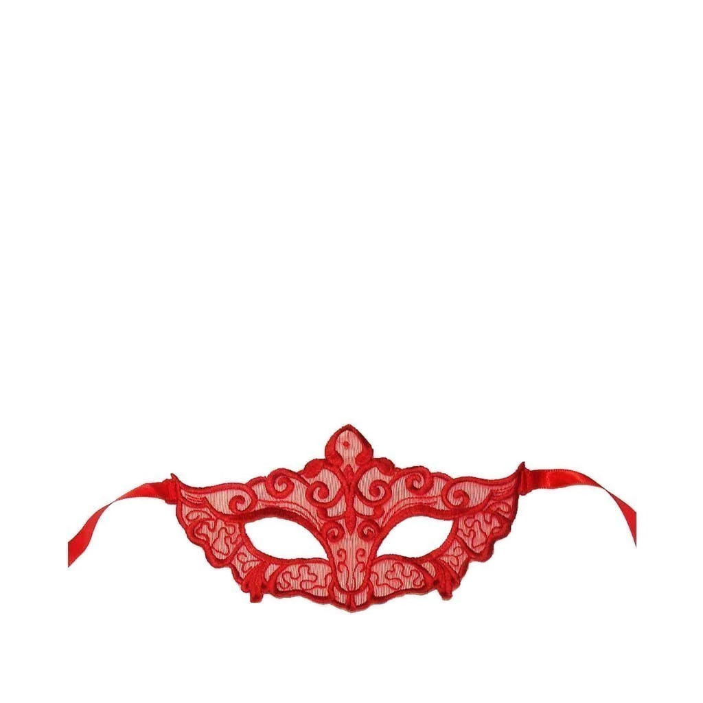 A Máscara Lavínia é confeccionada em tule bordado. Possui fitas de cetim para serem amarradas atrás da cabeça.