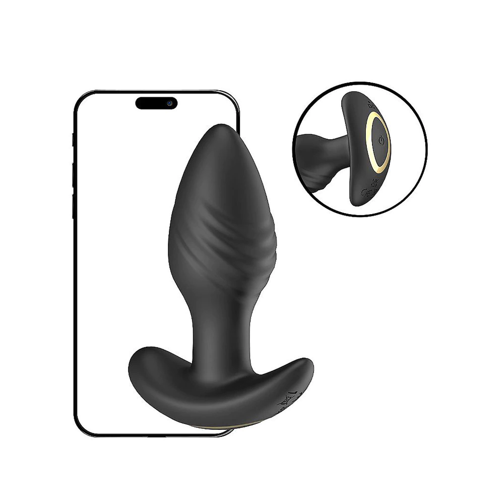 Plug anal - recarregável confeccionado em silicone, 9 modos de vibração e 9 modos de rotação. via Bluetooth.