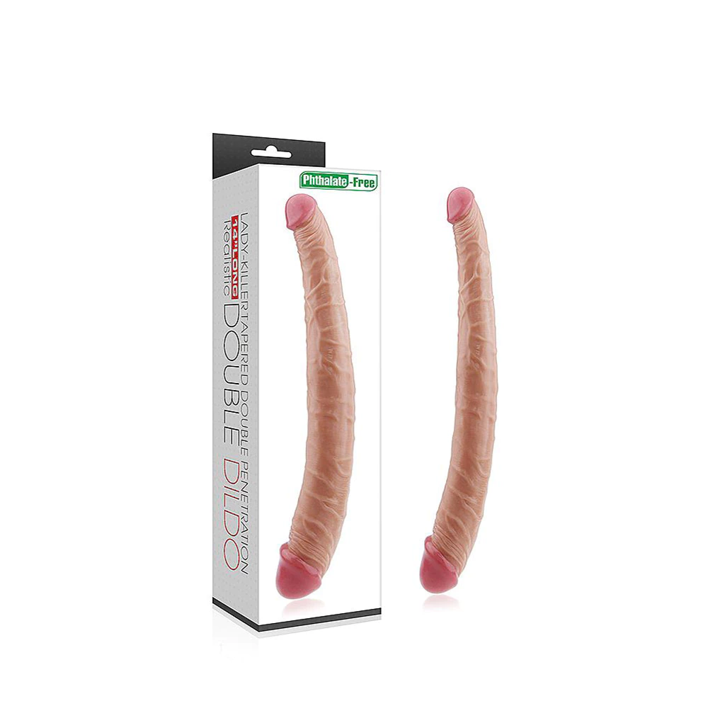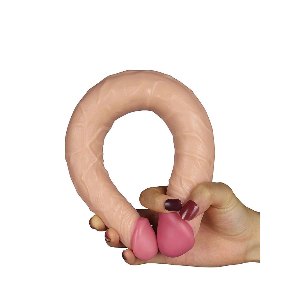 Realistic Double Dildo é um pênis duplo muito flexível com glande definida nas duas extremidades e textura saliente de veias, confeccionado em borracha TPE. Ele é muito mais interessante do que os outros pênis do mercado, pois pode ser utilizado por até duas pessoas ao mesmo tempo.