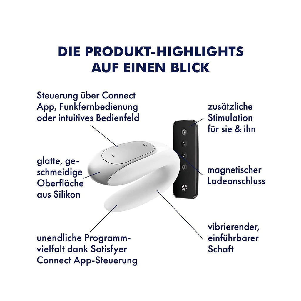 Esse incrível vibrador para casal estimula os dois e possui diversas possibilidades através do uso com o aplicativo Satisfyer ou com uso com controle remoto. Com sua forma em U que garante um ajuste tanto interna como externamente, permitindo uma deliciosa sensação para estímulo do ponto G, pênis e clitóris.