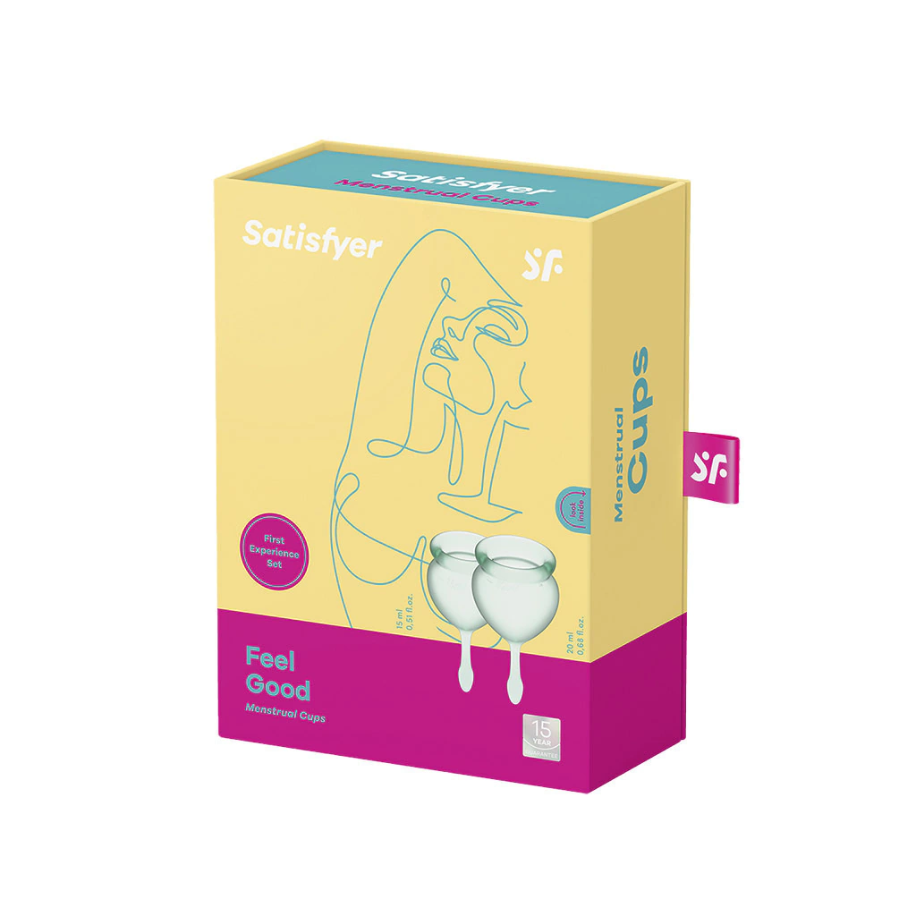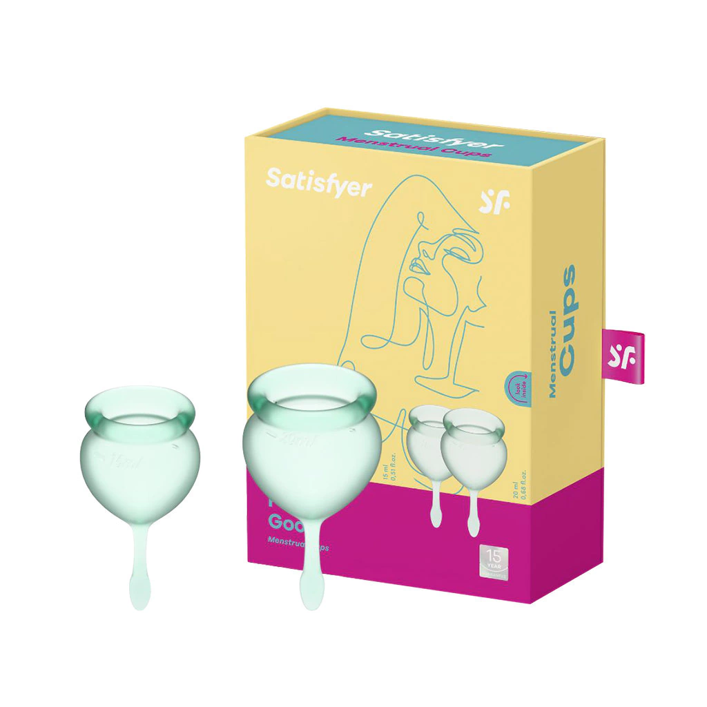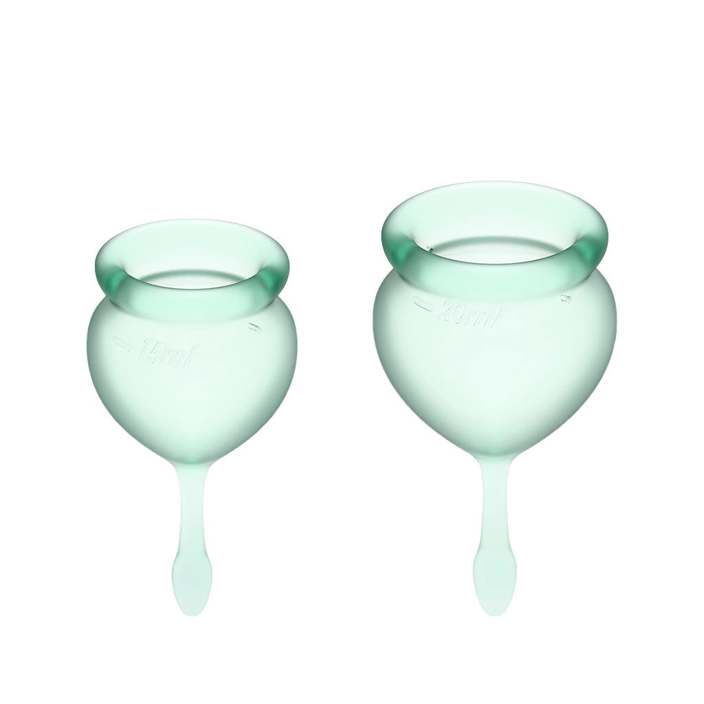 Feel Good é um copo menstrual higiênico que possui um design descontraído e material em silicone médico de fácil utilização. Vem em um kit prático de dois copos coletos que tem capacidade para 15 e 20ml, o que torna adequado para dias mais tranquilos e mais intenso.