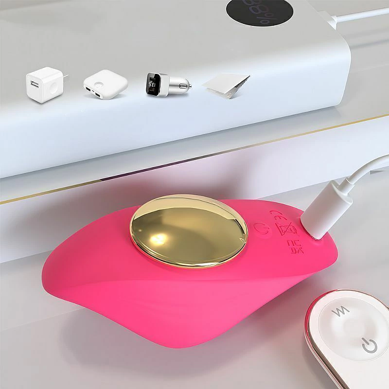 Com 9 modos de vibração. Com controle remoto. Recarregável e resistente à água.