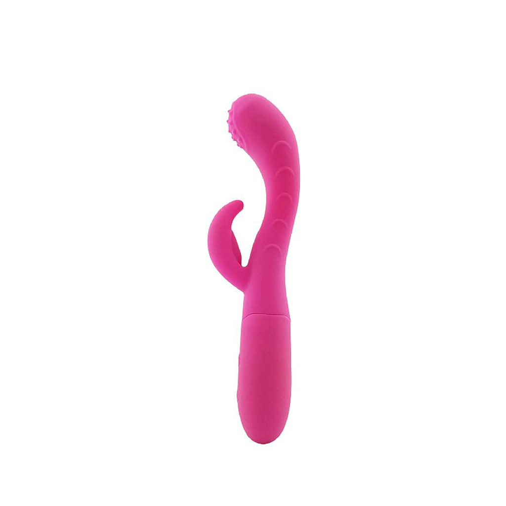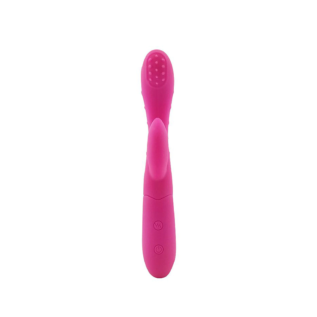 Vibrador ponto G e clitóris composto por silicone, material macio e com um toque aveludado.